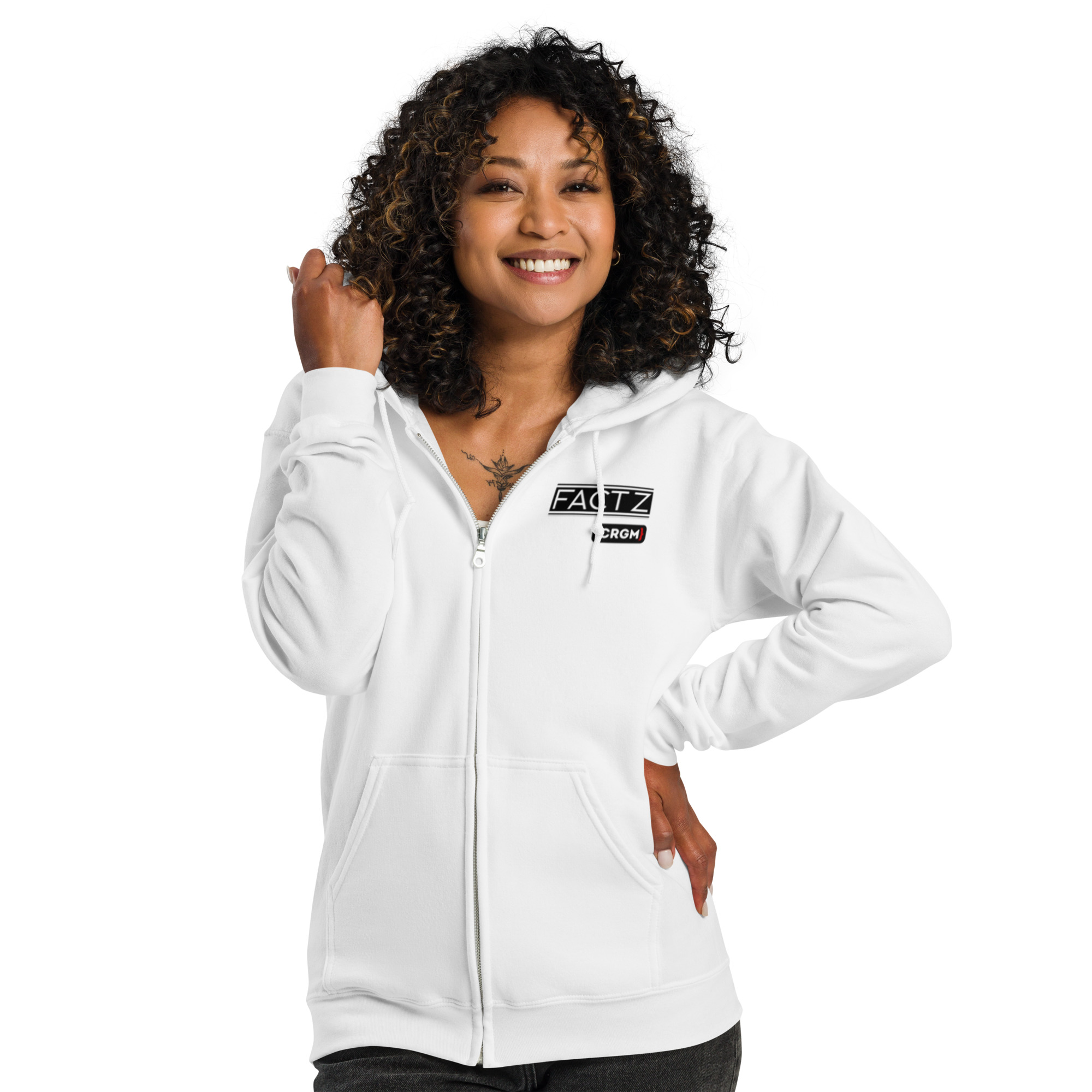 Designed with style and comfort in mind, this hoodie will quickly become your new favorite. It’s made from soft fleece inside and outside, with a sturdy metal zipper, convenient front pockets, and a hood with color-matched drawstrings.